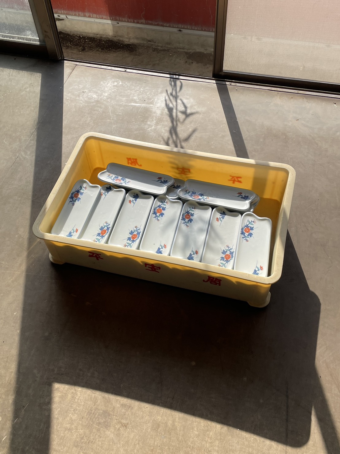 当社の前社屋に保管しておりました、平安閣時代に使用していた食器・調理器具類が一部残っております。