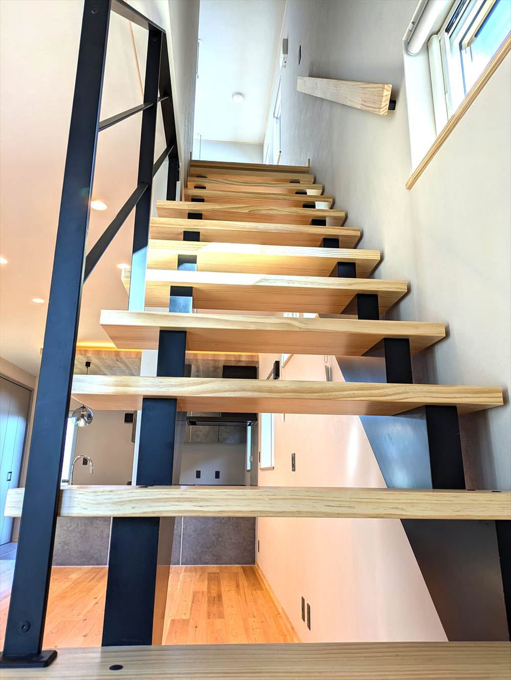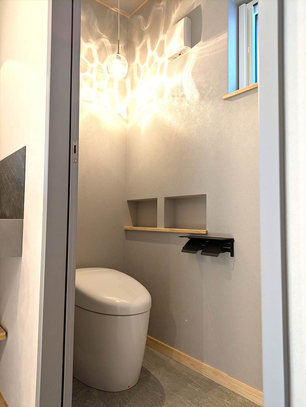 リビング 洗練されたデザインの中に癒しを求め 階段 アイアンと無垢材の私だけの階段 薪ストーブ 土間からリビングへとやすらぎ空間 トイレ 壁に揺らぐ灯り すっきりとしたデザインに、自然素材のやさしさを。 今らしさと心地よさを両立した、新しい住まいのかたち。